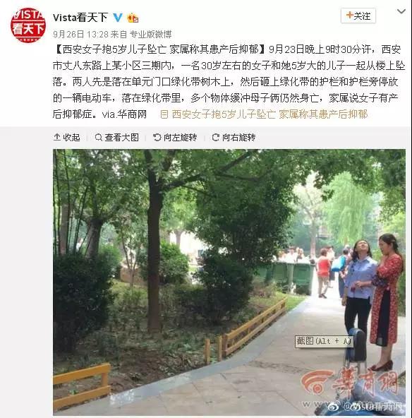 热点:西安小区母子坠亡 产后抑郁舍弃生命 如何不再发生!