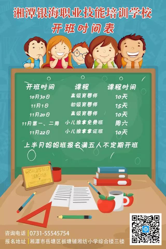 开班时间:11月1日 培训周期:15天 培训地址:湘潭市岳塘区板塘铺湘纺小学综合楼三楼