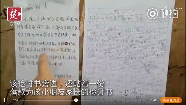武汉某小区10岁孩子把4至30层的电梯按了个遍 被业主投诉后爸爸严肃批评了孩子 但爸爸觉得是自己没把孩子教育好 和孩子各写了一份检讨书贴在楼梯里