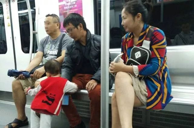 地铁里 一个小孩不小心拉了尿 父母立即用随身带的纸巾和报纸把地面擦干净
