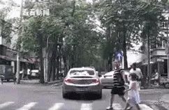 在石家庄一路口 一名妇女牵着一个小女孩过马路 看到车辆在斑马线前停下来 妈妈拉着女孩过了马路 并且提醒孩子鞠躬致谢 走的时候还挥手道别