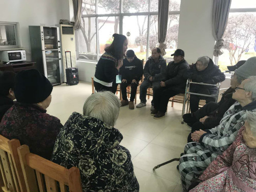 1月19日下午3时,“*************”锦德老年公寓传出了老人们动听的歌声和欢乐的笑声。原来是湘潭市银海家政服务有限公司的音乐照顾实务带动师刘梦老师正带着湘潭锦德老年公寓的老人们进行着一场革新型“音乐介入养老照护”公益课程。一群老人们围坐在一起,在刘老师的带动下,轻轻地拍打着铃鼓、扭动起身子,欢快地手舞足蹈,好欢乐。