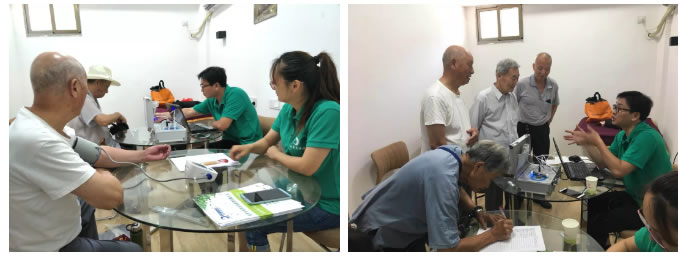 银海•俩宝贝工作人员在免费给社区老人作体检