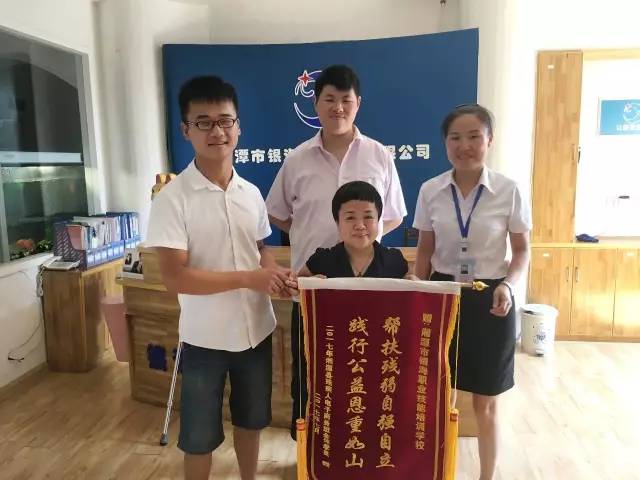 湘潭县第一期残疾人电子商务培训班学员代表向县残联和银海培训学校赠送锦旗