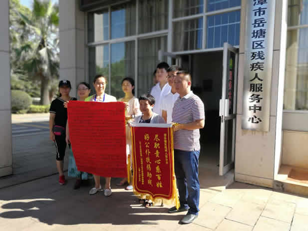8月7日学员代表携锦旗和感谢信向区残联致谢