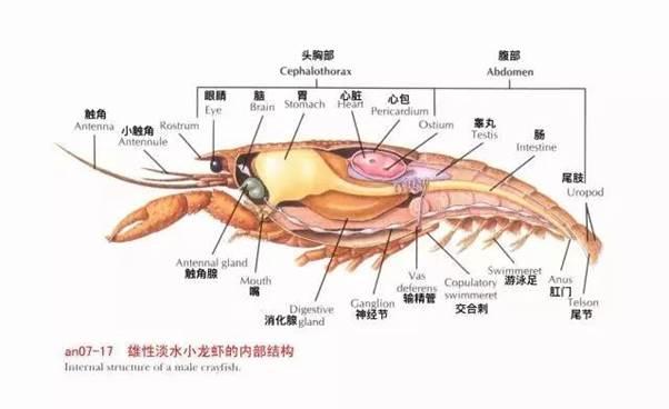 小龙虾虽小,但五脏俱全。 头部里面装满了脑,心脏,性腺,消化腺还有胃和触角腺等等杂七杂八的器官。而“虾头派”所崇拜的虾黄,其实就是小龙虾的消化腺,也就是虾的肝脏和胰脏。呃,怎么听起来有点恶心。