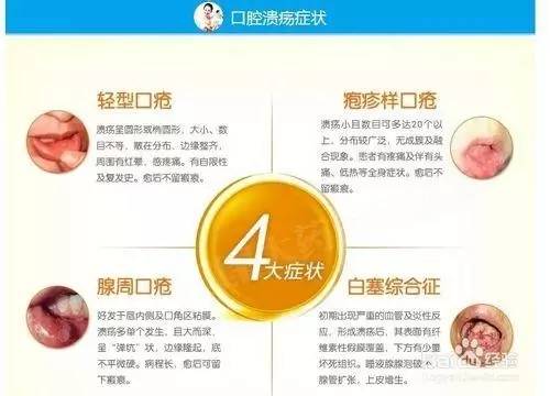 1、认识口腔溃疡 我们常能见到的口腔溃疡到底是什么?口腔溃疡在儿童中发病率较高,多数为1~6岁婴幼儿。溃疡多发生于口底、舌部、颊部、前庭沟、软硬腭、上下唇内侧等处,为圆形、椭圆形及簇拥成束或不规则形,面积最大2cm×3cm,最小0.2cm×0.2cm。 2、儿童口腔溃疡的原因 有些孩子只是偶然出现口腔溃疡的症状,而有些孩子却经常发生口腔溃疡,究其根本原因,是各不相同的。因为刺伤、擦伤、细菌沾染等缘故发生的溃疡属于一次性的,比较轻易治愈。通常敷用一些药物,3、4天左右即可好,而且不会复发。而顽固性的口腔溃疡大部分是由于缺乏维生素B而引起。一些并非口腔溃疡那么简单,而是另一种症状。如果孩子常两侧对称性发生口角湿白糜烂,裂缝,裂缝由口角横延约1cm左右,上遮盖黄痂,很可能就是发生了口角炎,通常孩子们无自觉性疼痛,当过度启口或继发沾染时可发生疼痛。而孩子的唇吻部从鲜红、火红到暗紫色变迁,光滑发亮,并伴有唇肿胀、干燥脱屑或剥脱糜烂,有烧灼感或刺痛感,有的唇部纵裂增加、加深,以上唇鲜明时,很可能唇炎已经找上了您。如果孩子发生舌炎,早期舌干燥,有烧灼感或刺痛感。然后舌体肿大,呈鲜红色,同时菌状乳头肿胀、充血。接着丝状乳头、菌状乳头萎缩继而消逝,使舌面变得光滑、发亮,呈萎缩性舌炎,有时呈地图舌,有时有舌面裂纹或小的溃疡,有的病人有口腔粘膜溃疡。这些都可能因为您的疏忽,让孩子长久缺乏维生素B而造成。 3、儿童口腔溃疡的治疗方法 为您详细划分了原因,我们在为您介绍一下儿童口腔溃疡的治疗方法。口腔溃疡看似治疗手法很简单,我们仍然希望您能跟随我们一步步做到位。 自我调节:首先,我们提议心理治疗。患者应该进行自我心理调整,去除有害精神缘故情绪不良的人应善于自解郁闷,包容自慰,与人和睦共处,生活乐观,只有您先保持一个好心态,才能得到最好的疗效。其次,我们希望您自身的饮食要重新规划,很多口腔溃疡与您长期的不合理饮食有直接的联系,特别是消化不良者,应限食或少量多餐进易消化,富含维生素的食品,不可偏食,多吃蔬菜水果,注重营养搭配注重维持口腔卫生早晚刷牙,饭后漱口,已有溃疡者,运用薄荷含片或1/5000的呋喃西林液漱口,如果孩子不接受这种味道,您也可以选择用10%的蜜汁含漱,能消炎、止痛、增进细胞再生,效果也不会差。孩子都爱蜂蜜,将口腔洗漱干净,再用消毒棉签将蜂蜜涂于溃疡面上,涂擦后暂不要饮食15分钟左右,可用蜂蜜连口水一同咽下,再继续涂擦,一天可反复涂擦数遍,也能成功治愈口腔溃疡。