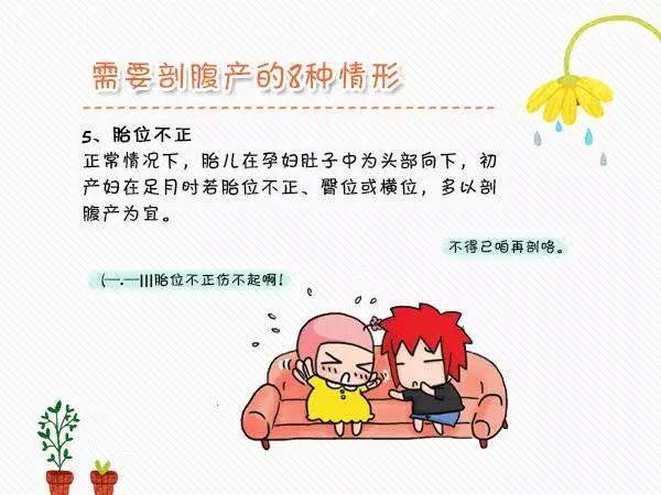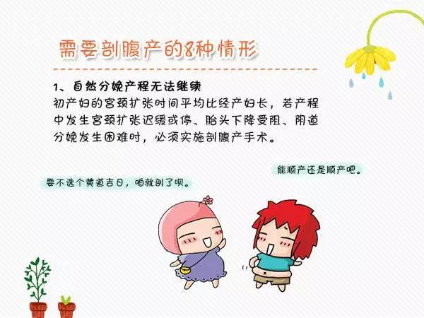 1、从见红开始,一般24-72小时就会有阵痛,如果是头一胎,建议准妈妈开始准备住院的物品,同时准妈妈还有时间可以洗个澡,再了解一下自己即将面临的是什么。 2、开始感觉到有疼痛就要区分是不是假性宫缩,假性宫缩没有规律,而真的宫缩会很有规律,最开始每10到20分钟疼一次,慢慢缩短至每10分钟疼一次,每次疼的时间大概20到30秒,这个时候就要吃得饱饱的去医院了,别忘记这个时候喝上一杯蜂蜜水,可以缩短产程的(这个阶段一般维持时间会较长,有的会疼十几个小时还没有开宫口的,或者只开到两指) 3、从10分钟一次开始慢慢缩短宫缩的停歇时间至6分钟一次,疼痛也要剧烈一些,这个时候让医生检查,通常已经开三指左右了,准妈妈要做的就是不要用力,不要害怕,等待小宝贝的到来,疼的时候可以数数,可以深呼吸,不疼立刻就躺好休息,或者吃些东西补充体力例如巧克力,或者喝一罐红牛。这个过程通常一两个小时 4、从宫口开三指开始就会更加缩短宫缩停歇时间,疼痛时间达到30秒或以上,但是这就意味着进入了第二产程了,不要着急,宝宝已经快要迫不及待的出来了,注意休息和深呼吸,记住,越疼越要深呼吸(这个阶段一般一两个小时) 5、如果这个时候破水,那么恭喜你,你可以直接上产床生产了,因为破水会缩短开宫口的时间,上产床并且医生让你用力那就是第三产程了,这个时候不能盲目的用力,一定要根据你的宫缩用力,开始宫缩就用力,向下用力,就像便秘的时候排大便一样用力,不要往回缩,宫缩结束立刻全身放松躺好休息,这个时候通常两分钟疼一次,一次一分钟,利用好这不疼的一分钟,充分休息,当医生看到宝宝的头就会让你先别用力,然后她进行侧切手术,其实很简单,就是一剪刀下去,再一用力宝宝就会顺利出来了,这个阶段一般比较快,都在一个小时内完成. 6、宝宝出来了,觉得好像大功告成了,别着急,最后两个步骤,娩出胎盘和缝合侧切刀口,前面都忍了,也别在乎这半个小时了,闭上眼睛好好休息吧,听着一旁宝宝哇哇的哭,成就感油然而生,很开心,很骄傲,很兴奋………… 该孕妇家属的做法实在让人气愤!为何不听医生的建议,要如此绝情!对于此事,我只能说:“这个孕妇嫁到他们家,真的是个错误!”。经过此事,有许多准妈妈要担心了,是顺产还是剖腹产?万一受不了也想跳楼怎么办!究竟什么情况下要选择剖腹产呢?有这么一些: