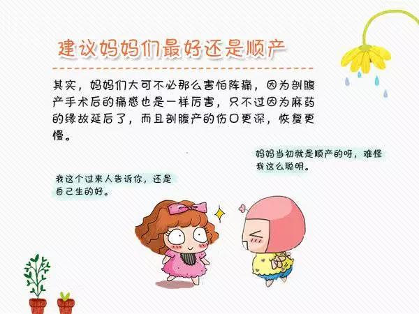 首先,我觉得应该来谈谈顺产和剖腹产更痛。顺产痛是每个女人一生之中最大的痛,但是也就那么几个时辰,难道剖腹产就不痛?不!只不过是延后了而已,而且疼痛的时间更长。一个母亲的伟大处之一,就是忍受了这种生产之痛。对于该事件中孕妇,我们应该作何评判呢?其一、跳楼轻生实属不该,生命诚可贵,何况一尸两命!就算自己不想活,也不能搭上自己的孩子,这样做,试问对得起谁!其二、为何等要生了才说要剖腹产?顺产还是剖腹产在生产之前应该听过医生的建议,与家人的商量好后决定,“临阵换枪”真的好吗?其三、没有去掌握能减轻产痛的知识,产痛是不可避免的,但是却可以减轻。既然决定顺产,就应该要学习下相关知识,如果该孕妇掌握了一些知识,并运用了,该事件也许就不存在了,她会光荣的成为一位好妈妈。其实在科学发达的今天,掌握相关知识很容易,那么如何减轻产痛呢?下面我们来谈谈: